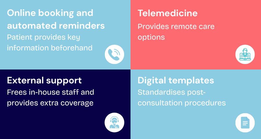 Telemedicine can be reserved for follow-ups that do not require physical examination, freeing up in-clinic slots for higher-need cases.